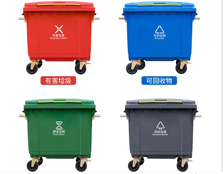 根據北京市政規(guī)定,四色分類垃圾桶,對應可回收物,其他垃圾,廚余垃圾,有害垃圾。對應藍色,灰色,綠色,紅色垃圾桶。 北京四色分類垃圾桶現貨供應,規(guī)格240L 120L 100L 50L 60L 40L 30L齊全。